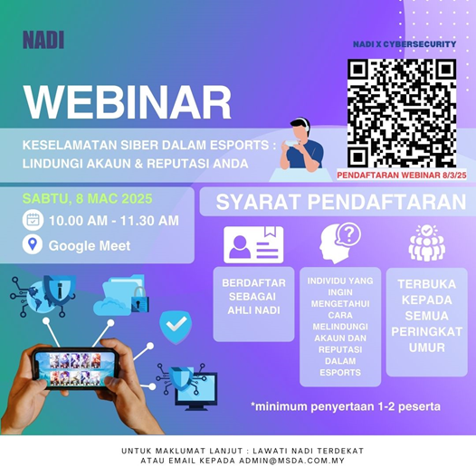 Dalam dunia eSports yang kompetitif, ancaman siber seperti penggodaman akaun, penipuan dalam permainan, dan pencurian identiti semakin meningkat. Webinar ini akan membimbing pemain eSports tentang cara melindungi akaun, data peribadi, dan reputasi dalam talian.